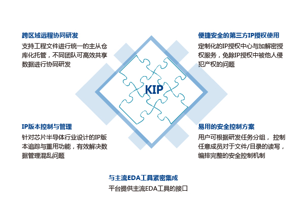 基于知識產權保護的協(xié)同研發(fā)與IP數(shù)據(jù)管理平臺 用戶友好的IP追溯與重用系統(tǒng),支持網(wǎng) 頁端操作,提供IP版本標定,發(fā)布,重 用,文件倉庫管理,主干分支操作,記 錄回滾,文件對比, IP加解密及授權管理等功能。